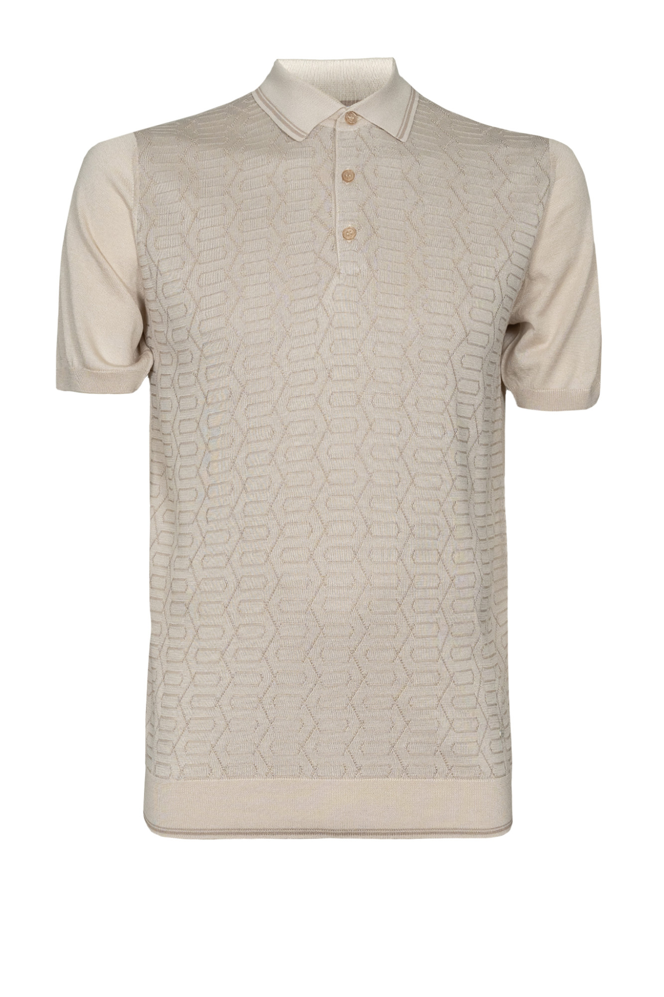 • Поло ENRICO CERINI полуприлегающего силуэта из высококачественной хлопковой пряжи с добавлением натурального шелка. «Zegna Baruffa»-это итальянская пряжа класса люкс, изделия из такой пряжи мягкие, устойчивы к пилингу и выцветанию, а так же мало подвержены усадке. Шелковые нити облегчают изделие, придают им изысканную элегантность, легкость и стильный шарм. Воротник отложной. Застежка на три пуговицы. Низ изделия и рукавов на резинке. Передняя часть поло с рисунком, спинка гладкая. Стильная и элегантная вещь отлично подойдет для повседневной носки.