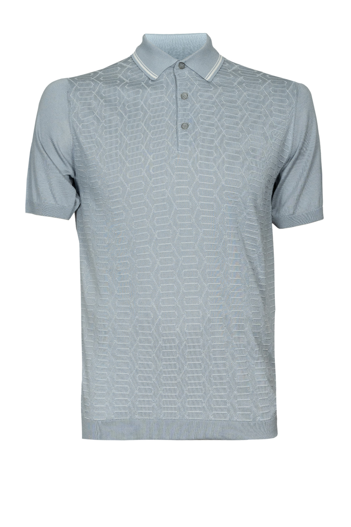 • Поло ENRICO CERINI полуприлегающего силуэта из высококачественной хлопковой пряжи с добавлением натурального шелка. «Zegna Baruffa»-это итальянская пряжа класса люкс, изделия из такой пряжи мягкие, устойчивы к пилингу и выцветанию, а так же мало подвержены усадке. Шелковые нити облегчают изделие, придают им изысканную элегантность, легкость и стильный шарм. Воротник отложной. Застежка на три пуговицы. Низ изделия и рукавов на резинке. Передняя часть поло с рисунком, спинка гладкая. Стильная и элегантная вещь отлично подойдет для повседневной носки.